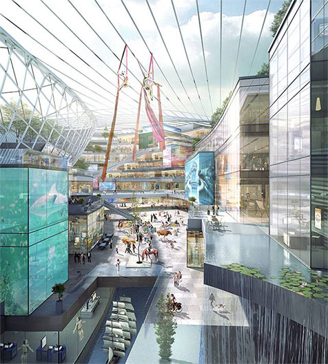 我們建立了一個(gè)三維的觀看、互動(dòng)和體驗(yàn)的核心空間,這個(gè)核心就像一個(gè)巨碗,中空體量承載著豐富的城市公共空間活動(dòng)的可能性,把不同目的的人群(商業(yè)、公共活動(dòng)、交往、路過、駐留)都集中起來(lái),使得商業(yè)活動(dòng)融入一個(gè)充滿想象、互動(dòng)和體驗(yàn)的環(huán)境中。