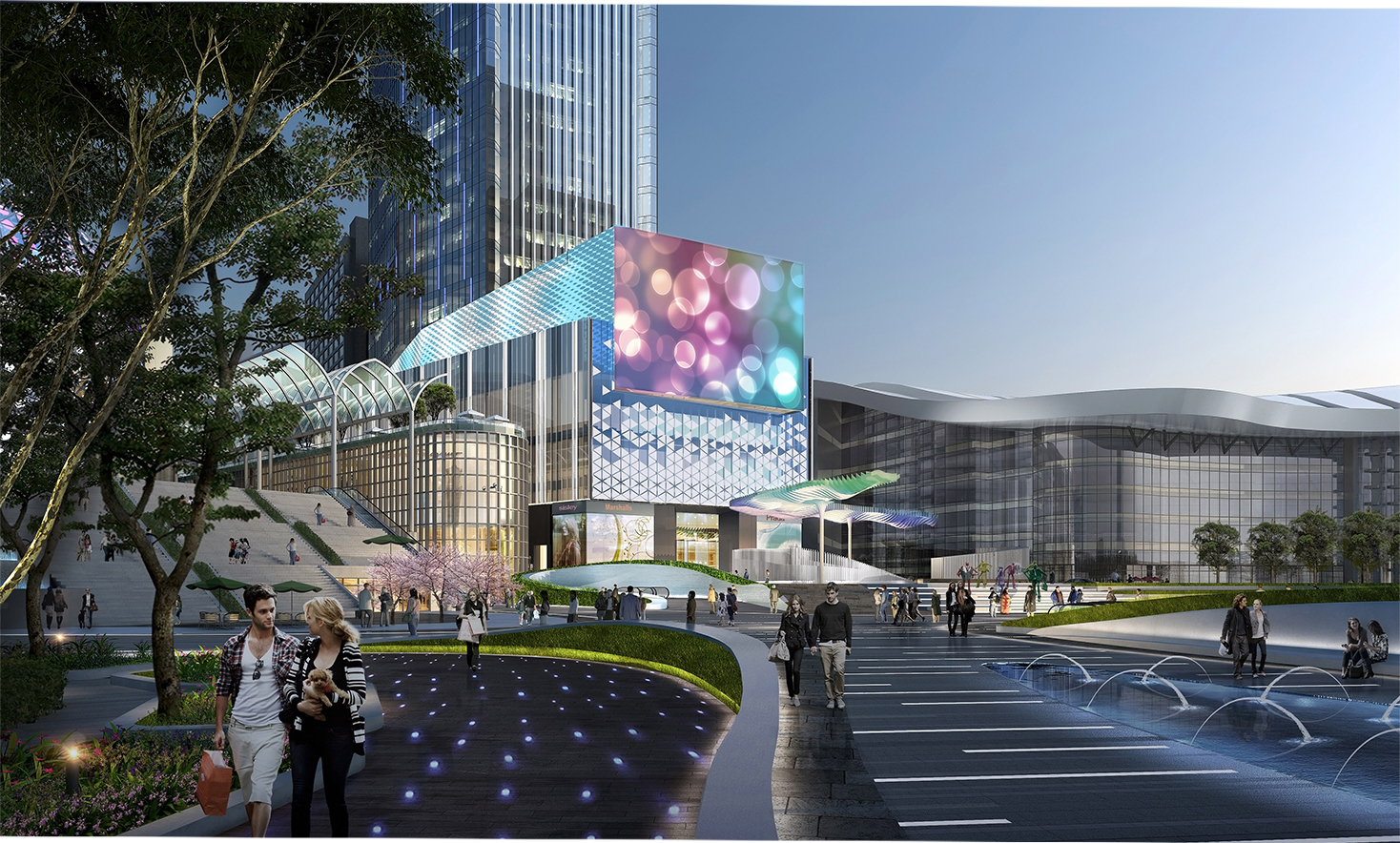 設(shè)置下層廣場(chǎng)與地鐵站無縫對(duì)接;設(shè)置商業(yè)連廊,放大主要出入口,在主要位置放置 LED 電子屏裝點(diǎn)入口廣場(chǎng);設(shè)計(jì)立體交通以匯聚光谷廣場(chǎng)地上地下以及一期步行街人流;屋頂造型獨(dú)特。設(shè)計(jì)師通過一系列方式體現(xiàn)“光”的概念,力圖讓每一個(gè)經(jīng)過光谷廣場(chǎng)的人都能感受其特點(diǎn),從而打造一道全新的城市亮麗風(fēng)景線。