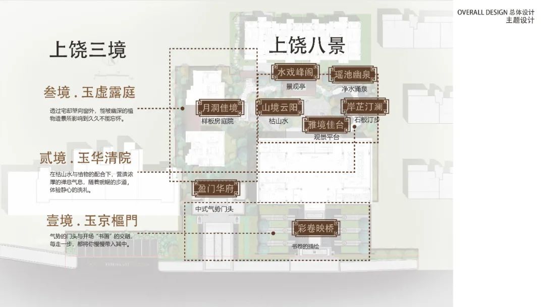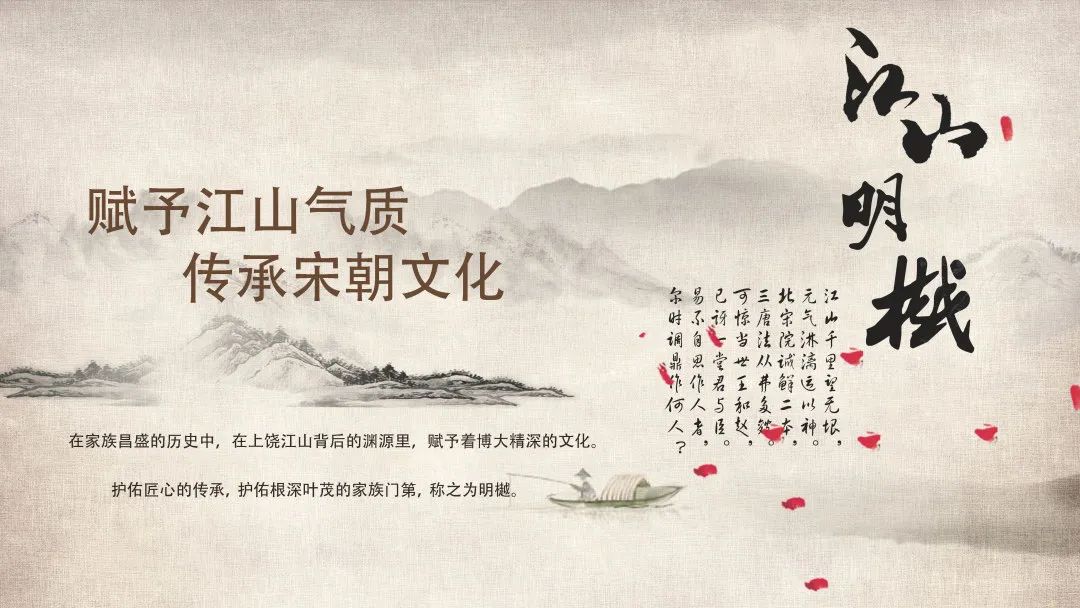 項(xiàng)目分為2個(gè)地塊,地塊一占地60畝,地塊二占地43畝。項(xiàng)目示范區(qū)位置靠近城市主干道,通達(dá)性、昭示性良好。在家族昌盛的歷史中,在上饒江山背后的淵源里,賦予著博大精深的文化,護(hù)佑匠心的傳承,護(hù)佑根深葉茂的家族門第,稱之為明樾。項(xiàng)目傳承宋朝文化,賦予江山氣質(zhì),故案名為【江山明樾】。項(xiàng)目將宋朝美學(xué)與現(xiàn)代景觀相結(jié)合,打造一個(gè)更鮮明的東方時(shí)尚。