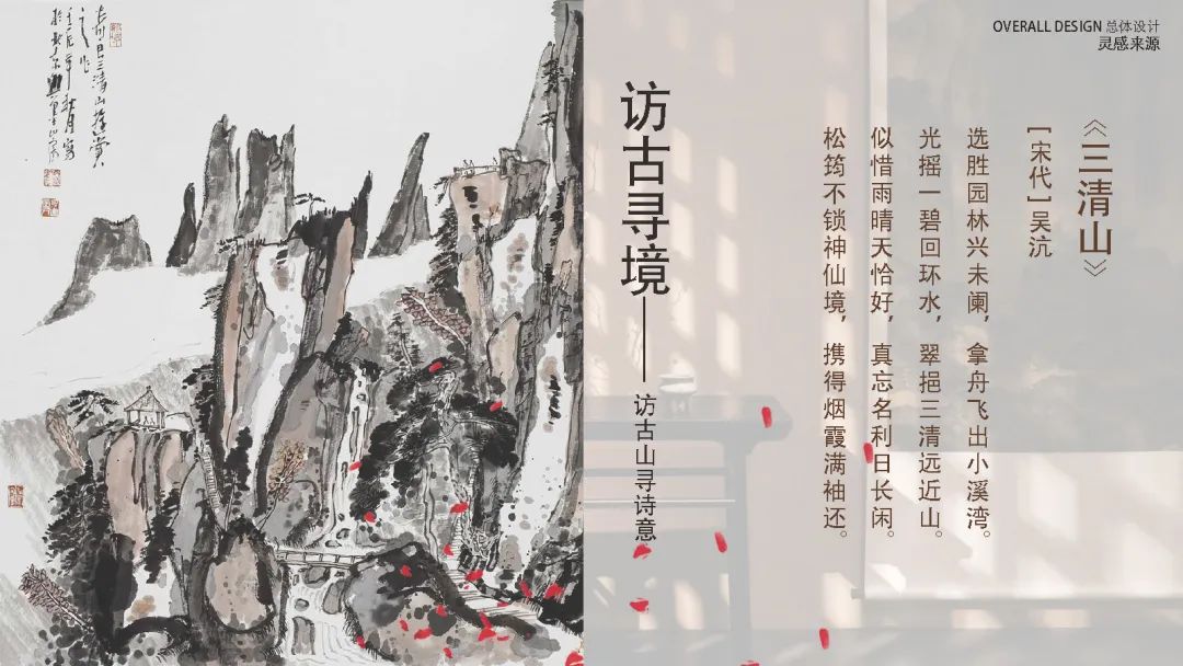 展示區(qū)借上饒八景提煉八重景觀體驗(yàn),以上饒的八大景觀,月亮灣,玉清臺(tái),龍?zhí)逗?,臥龍谷,陽春古戲臺(tái),鵝湖書院,汪口古村,三清宮為背景,將上饒文化融進(jìn)設(shè)計(jì)中,打造屬于上饒?zhí)厣木坝^。