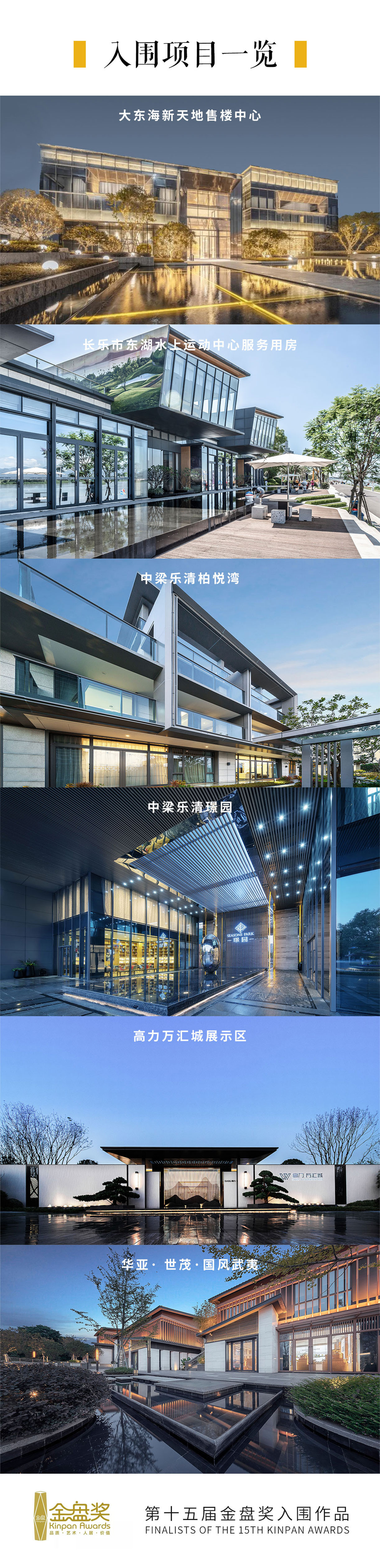 2020年第十五屆金盤獎,本司華亞 · 世茂 · 國風武夷,高力萬匯城,中梁樂清璟園,中梁樂清柏悅灣,長樂東湖水上運動中心,大東海新天地售樓中心成功入圍。