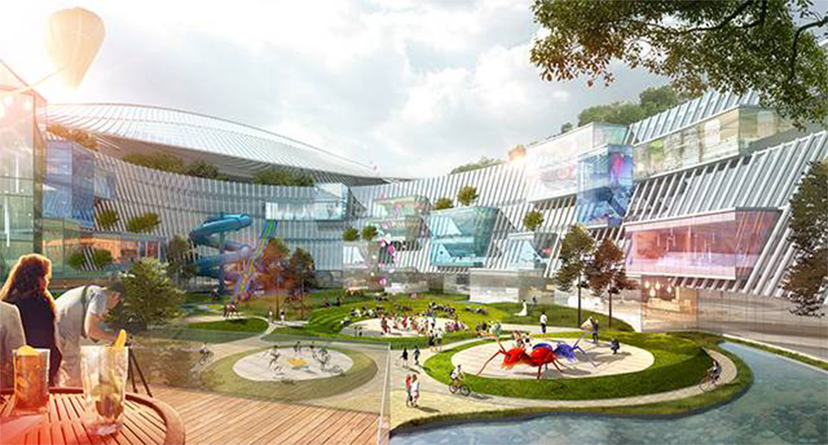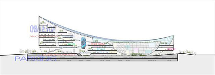 我們的靈感來(lái)源于體育場(chǎng)館建筑原型,意圖用超級(jí)碗的建筑形式來(lái)解決商業(yè)綜合體面臨的諸多城市問題。