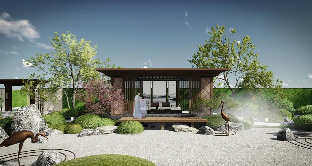 第二進(jìn)空間 景亭與枯山水形成雅境佳臺(tái)的意境景觀▲