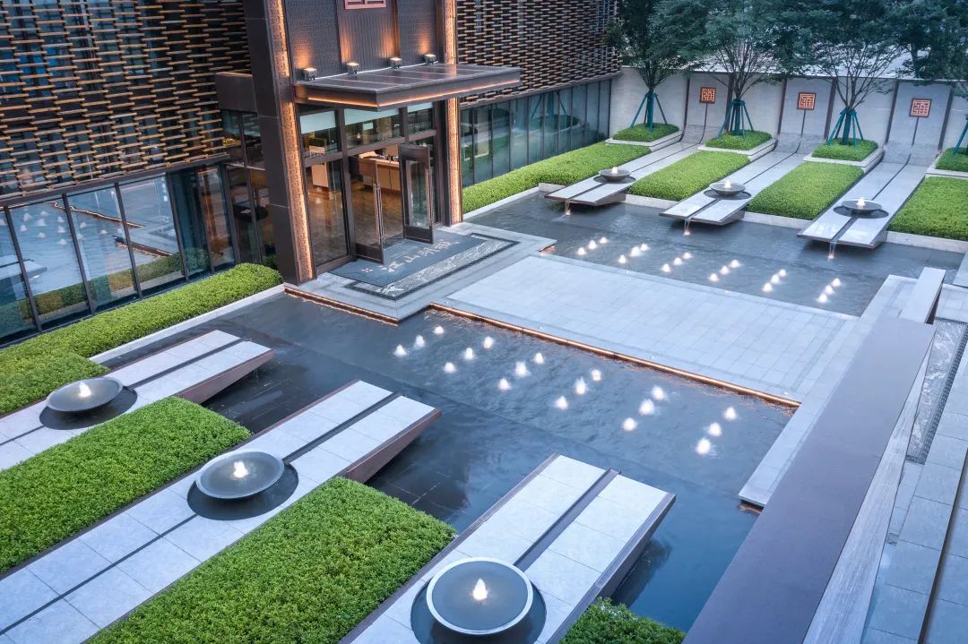 穿越第一進(jìn)空間,書卷水景與涌泉形成了畫卷般的美景。