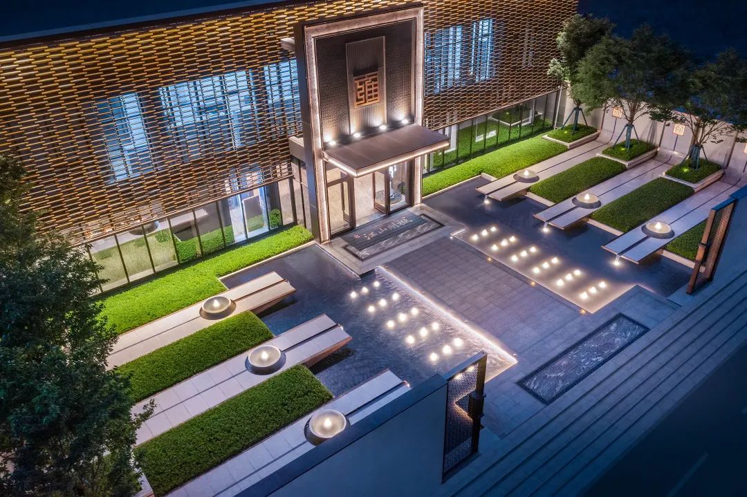 穿過售樓處建筑,豁然開朗,整個(gè)后場(chǎng)營(yíng)造了一個(gè)極為簡(jiǎn)潔純粹的空間,隨著晨昏的時(shí)間變化,交織的光影在景亭和水面上作畫,只為營(yíng)造純粹的東方美學(xué)意境,整個(gè)庭院猶如一幅持續(xù)變化著的山水畫卷。