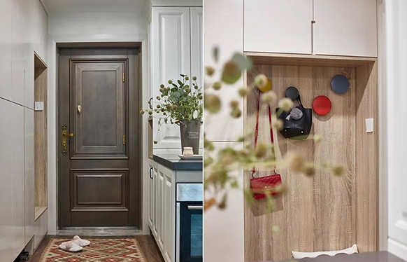 一般的家庭玄關的基本功能就是玄關鞋柜。這款產(chǎn)品給客戶提供的除了玄關柜外,還有兩大功能:一是在廚房的北側(cè)增加了家政收納間,以增加生活的便利。買菜歸來,從家政間直接進入廚房,避免弄臟餐廳;二是增強玄關柜的分級及規(guī)模;受疫情的提醒,我們把玄關位置設置為臟區(qū)和凈區(qū);即解決了衛(wèi)生問題,又解決了疫情期間物資儲存的需求。老人帶寶寶玩耍歸來,可以先在衛(wèi)生間洗干干凈凈后,再進入家庭內(nèi)... ...