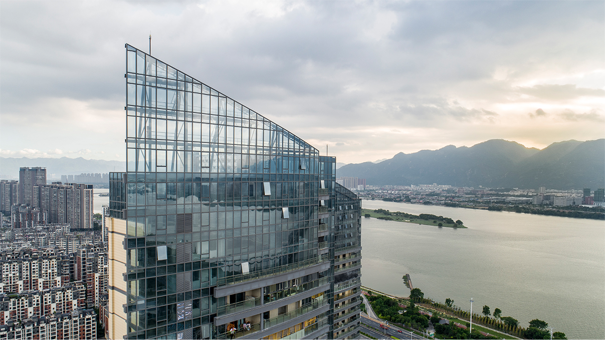 地塊位處橘園洲大橋立交旁,是烏龍江沿線地塊承上啟下的重要節(jié)點(diǎn)。項(xiàng)目從城市設(shè)計(jì)的角度出發(fā),將4棟高層體量規(guī)整為3棟,向上堆疊,形成130米、140米、150米三棟超高層建筑。建筑外立面采用玻璃結(jié)合陶板的全干掛幕墻系統(tǒng),三角形頂部幕墻的形體設(shè)計(jì)帶有江畔揚(yáng)帆的寓意,從建筑表皮及建筑形體兩方面區(qū)別于沿線其他的高層住宅樹立項(xiàng)目的江畔橋頭地標(biāo)性建筑形象。